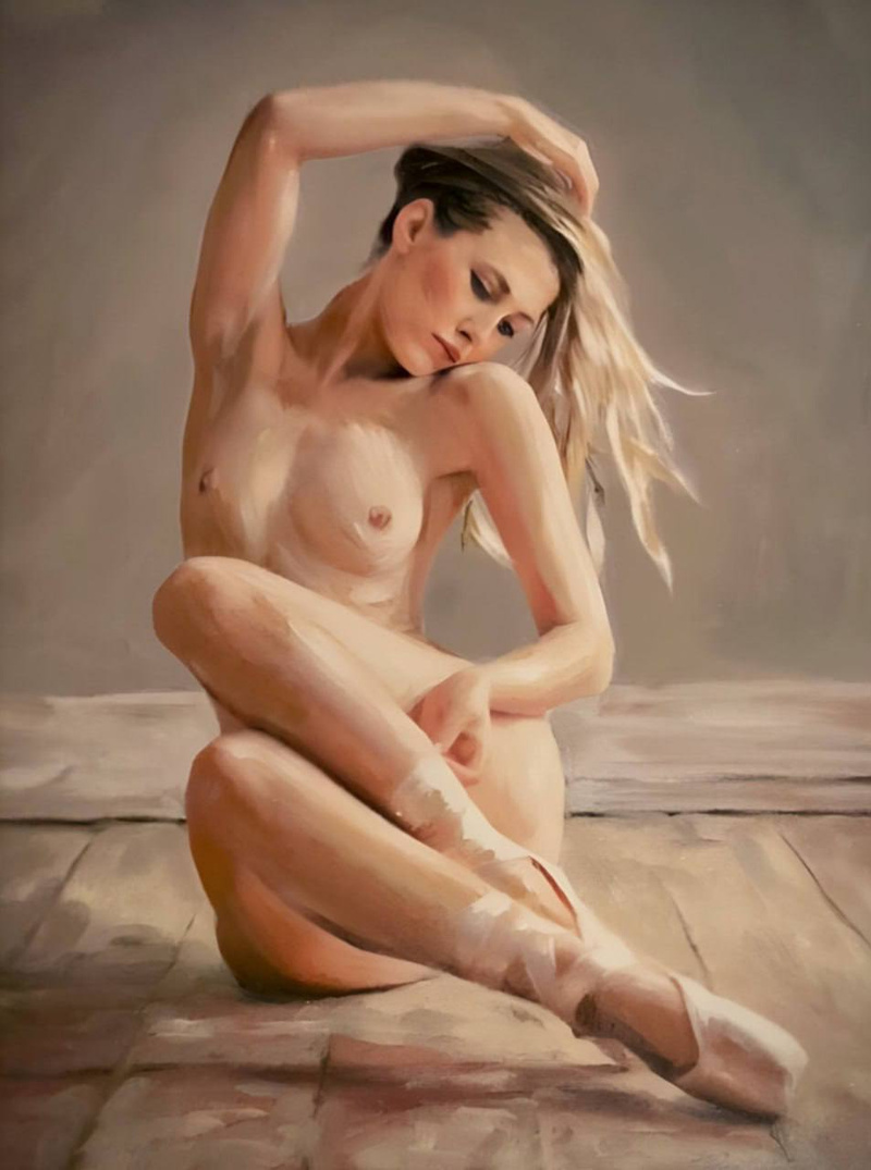 Без пуантов она просто голая тетка, а в пуантах - обнаженная балеринаОбнажённая в голубом интерьере![]()