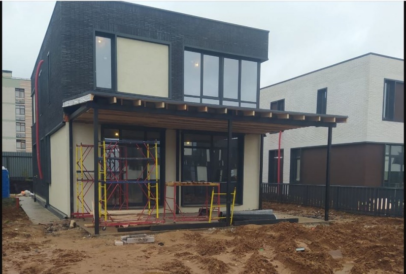полагаю в перспективе крыльцо будет закрыто алюминиевыми порталами.. Чтобы шлепки дождём не мочило.. Не знаю где будет обязательный зимний сад с пальмами, не видел плана..