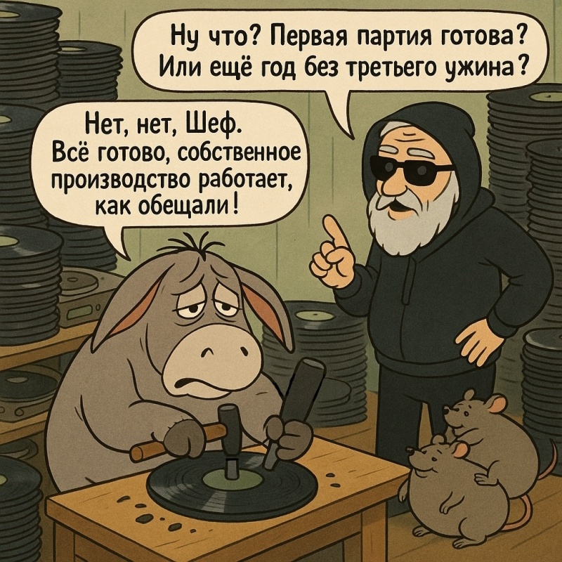 Да, похожа, а винил реально найти такого альбома в норм состоянии?Когда мы винил покупали по цене месячной зарплаты у фарцовщиков, - было реально. Фарцовщики в свою очередь скупали контрабандный винил у моряков дальнего плавания, детишек дипломатов и т.д.. Можно было даже кое-кому делать заказы, но это мало практиковалось. У меломанов был свой круг общения, мы могли менять, покупать в основном у фарцовщиков. Реально выйти на поставщиков было сложно, потому что перекупщики имели на этом немалые деньги и ещё они валютой торговали, а это всё было очень нелегально и там были расстрельные статьи.