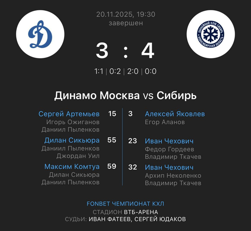 Сибирь - Драконы. Первый период закончился. Счет 0:0