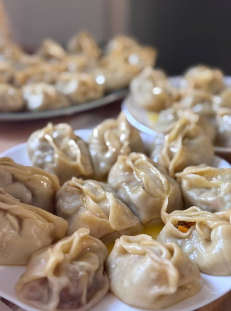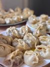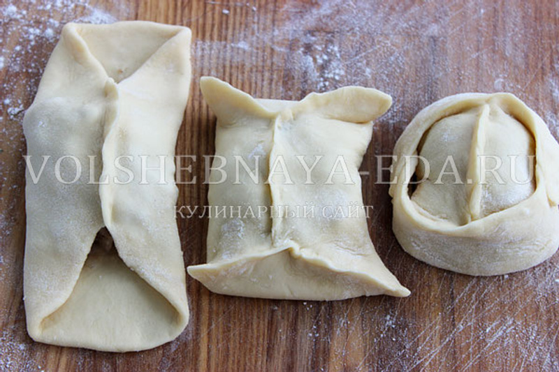Большой пельмень - это хинкалий же.Хинкали грузины лепят особенным способом. Должен получиться мешочек. Края лепёшки собираются в сборку и залепляются без отверстия. Поедание хинкали - это тоже особенная традиция. Хинкали едят руками, держат их за пучок из теста, как за ручку. Поскольку фарш делается из говядины с большим количеством свиного сала, лука, кинзы, петрушки, красного перца чили, он получается очень сочным.