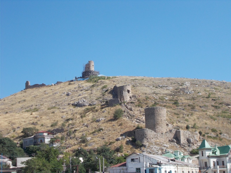 Пошли мы пешком из Фиростефани на мыс Скарос. Идти далековато, через другой городок. На мысе этом развалины старой крепости и виды на остров. Я боялась, что дочка не оценит - вроде для ребёнка ничего интересного... Поэтому я это обозвала словом "поход", а дочь в походах настоящих не была, сразу уже от одного этого слова воодушевилась.