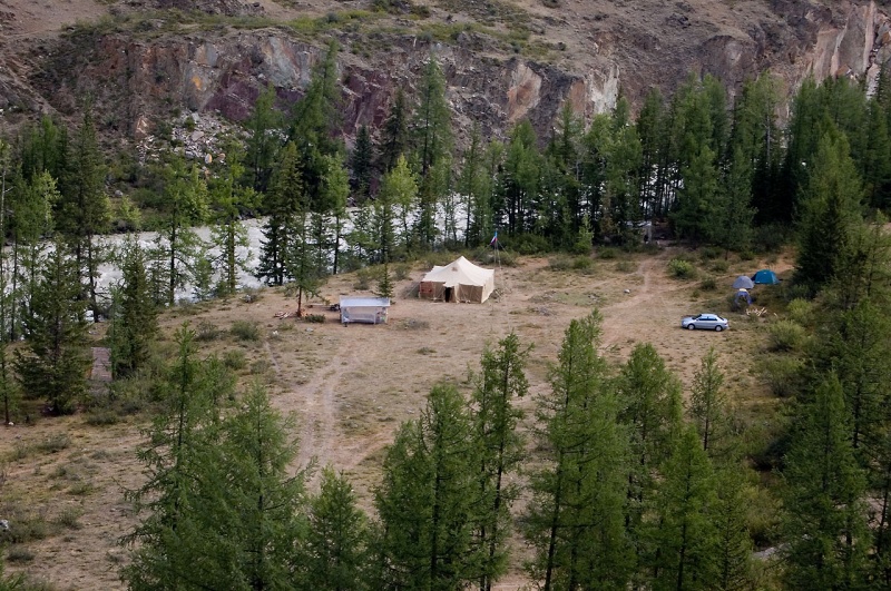 55 фотка - потом пошли в низ по Чуе. Там есть база НАДЕЖДА. Так разрослась она, стоит много больших палаток, много больших и новых юрт и много автомобилей. И вертолет, которые прилетел, стоит там же. Потом сказали, что иностранцев привезли.