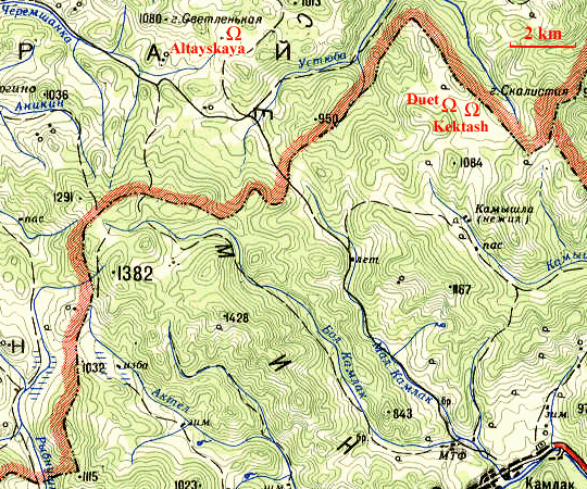 Схемку вот такую в инете нарыла, но на ней именно провальные ямы отмечены. маршрут примерно через них и проходит, и через нежилую Камышлу вдоль речки возвращается на базу, насколько мне известно.деревни камышла уже нет очень давно. долго там стояла изба, но к началу нашего века и её раскурочили, не рассчитывайте на неё. где-то есть избы, не отмеченные на старых картах, видел пометки в отчётах томичей, но нынче лето на дворе. думаю, это неактуально. простите, что озвучу эту банальщину, но на всякий случай: вывозите весь мусор с собой на базу, плиз. район замечательный, мною любим, но тенденции нехорошие уже наметились...