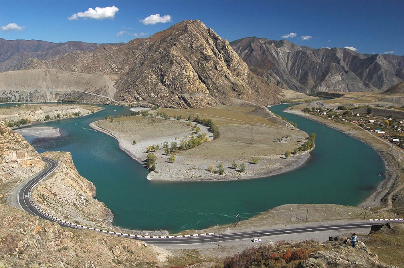 • Изгибы Катуни на 695 км перед с. М.Яломан.