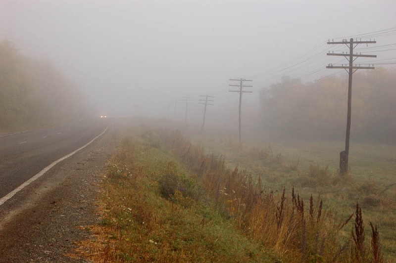 • Утром туман на Чуйском тракте.