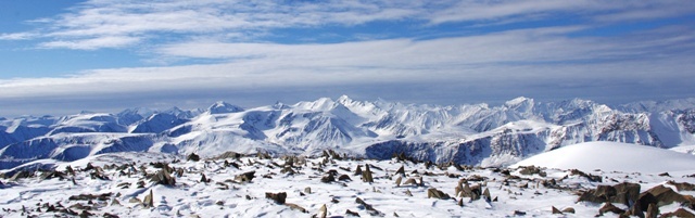 В противоположную сторону открывается красивейшая панорама, виднеются Купол, Караташ, Снежная, Южно-Чуйский Хребет и даже что-то за ним… ( http://fotki.yandex.ru/users/dsilevi/view/192847?page=0 )