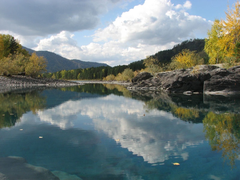 Последние три года ездили на Алтай в первые выходные октября. Погода всегда была хорошая. Останавливались в Аносе или Аскате. И гуляли до Голубых озер. С купанием и обедом на месте как раз на весь день прогулка получается. Еще и грибов по пути собирали на обед или ужин. Понятно, что не ахти какой маршрут, но место нам очень нравится и теперь уже осени жду, чтобы опять туда поехать. При чем каждый год оно разное. Зависит от погоды, уровня Катуни и пр. Хоть и популярное оно, даже в октябре.