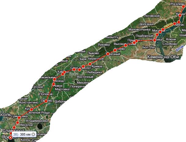 Мы ехали и потом подтвердили у местных, что это самый лучший маршрут: от Крутихи направо и через Прыганку-Высокую Гриву-Конево-Панкрушиху-Серп и Молот-Хабары-Орлово-Славгород-Яровое. Дорога местами не очень, сбавляли до 100, а так 120-140 нормально.