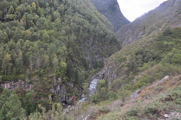 От перевала до слияния с Чульчей примерно 30 км гравийки в низ по течению (на седане примерно час езды).Оптимистично
