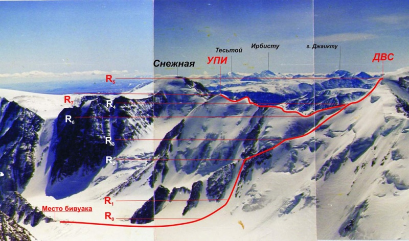 Коряво написал, поэтому путаница. Я имел ввиду классический маршрут на УПИ по 2Б. Который проходит через первую ступень ледопада под склонами Караташа, потом через вторую ступень ледопада под склонами Снежной и потом на гребень УПИ.