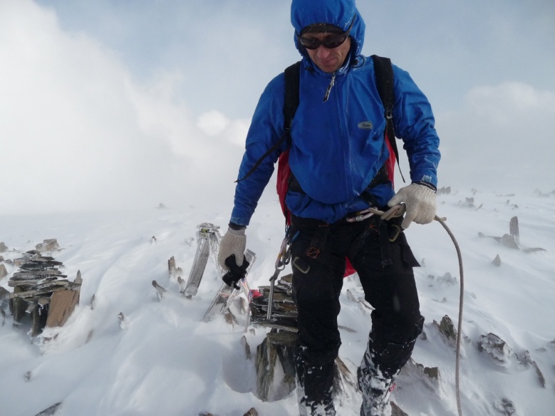 • Это в этом году ходили? Интересный вариант. Я по фоткам посмотрел, если кулуаром не ошибится, то действительно, выходит практически к самому гребню. А в этом году уже ходили ДВС до вас? В прошлом то его не особо жаловали, даже по северо-восточному гребню.