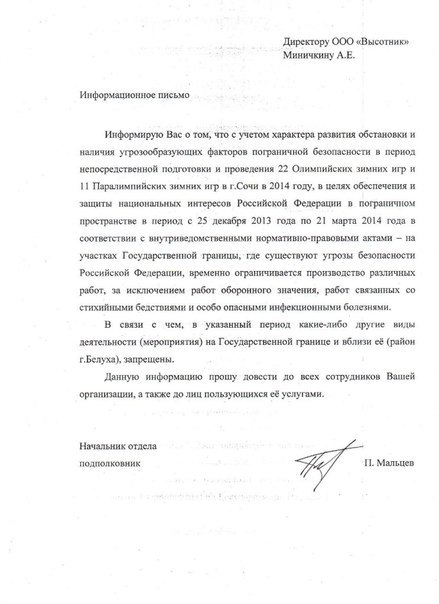 • В ответ на: похоже у пограничников опять новая заморока - надо оформлять уведомление об осуществлении хоз. ... и иной (т.е. тур.) деятельности ЗА ПРЕДЕЛАМИ 5-КМ ЗОНЫ вдоль гос границы. т.е. если тур. группа не уведомит пограничников - то возможны штрафы.