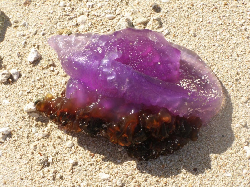 яркие , сиреневые медузы. Приходится быть острожным, хотя сама видела как местные их выбрасывают на берег руками