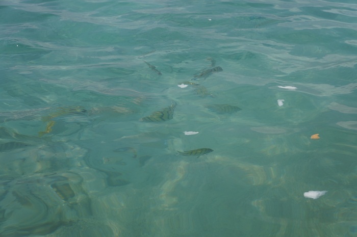 Правда сегодня только и успели на пляж съездить, в обед пошел дождь - мелкий нудный тропический дождь. На пляж взяли с собой хлеба, так даже на глубине по пояс приплыло видов пять рыбок,ничего не боятся.Своё счастье я узнаю из тысячи…Оно смотрит на меня моими глазами!