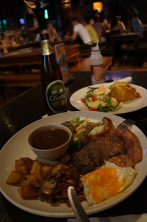 . Готовили не быстро, но зато мясо оказалось превосходным и его принесли в большущих тарелках,все дополнялось картошкой,грибами и овощами. Отличное сочетание и вкус. По идее одной порции спокойно хватило бы и на двоих, поэтому поужинали мы ооочень плотно и отдали всего то 500 бат. тем временем,пока мы ждали и ели, народ постепенно начал прибывать и мы решили перебраться ближе к бару, так как там уже вышли на сцену музыканты с инструментами...Своё счастье я узнаю из тысячи…Оно смотрит на меня моими глазами!