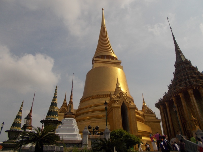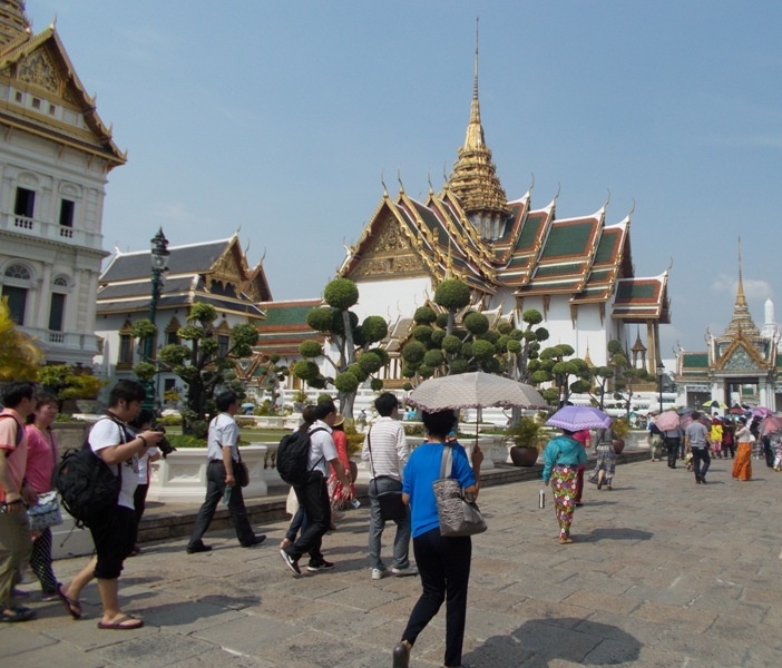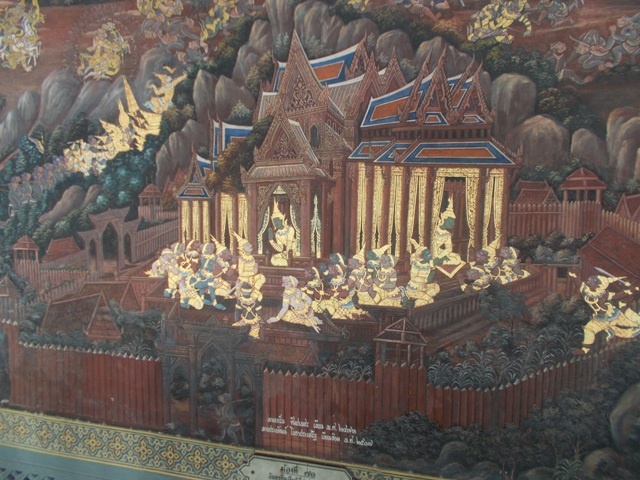 . Поездка в метро экономит время (и деньги может быть). Отель выбирали с таким расчетом, чтобы на следующий день с утра пойти в Королевский дворец. Вход во дворец стоит 500 бат. Глядя на бегающих за гидами кучки людей, порадовалась, что пошли в Королевский комплекс самостоятельно. Устав от жары, прятались в галереях, рассматривали фрески.