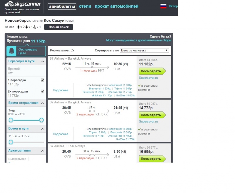 Сегодня цены у посредников уже от 16, и надо еще обратный дешевый билет найти. Так что по старинке придется: OVB-BKK, а там Air Asia.