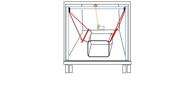 • Ты этим подъёмником (что на моей схеме) займёш весь полезный объём кузова. По металлоёмкости он получиться не съёмным (тяжело съёмным). К тому же высота потолка ограничивает высоту стрелы подъёмника, а значит и его плечо выгрузки (короче будешь выгружать себе на (под) бампер)
