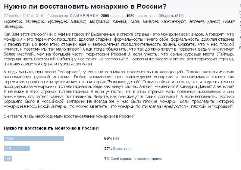 Ответ на сообщение Re: Нужно ли восстановить монархию в России? пользователя Docent
