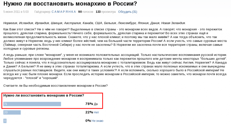 Кто они, эти отдавшие свои голоса за восстановление монархии?Да какая разница? Интересен сам факт.