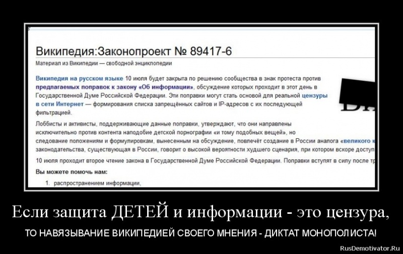 "Намерения Wiki быть закрытой я не поддерживаю. Но этот шаг - важная реакция сообщества, знак, что нужно совершенствовать закон", - написал он во вторник в своем микроблоге в Twitter.