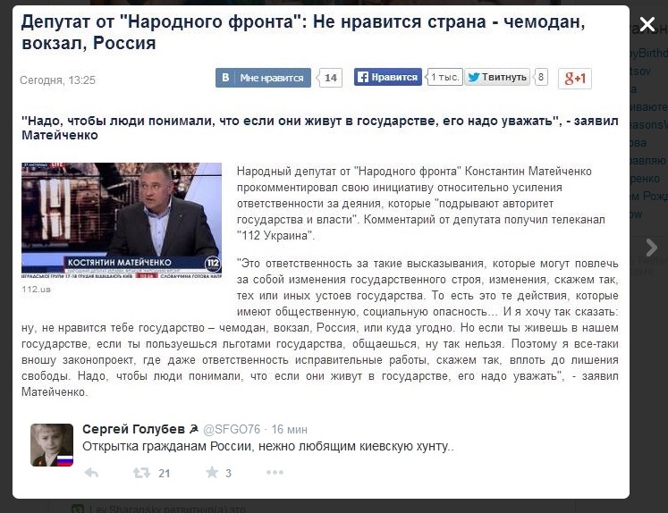 В ответ на: Согласно тексту законопроекта, предлагается дополнить Уголовный кодекс Украины статьей 339-1 «Умышленные действия по подрыву авторитета государства и его органов власти», которая карает за «общественно опасные противоправные деяния, посягающие на авторитет Украины как суверенного государства».