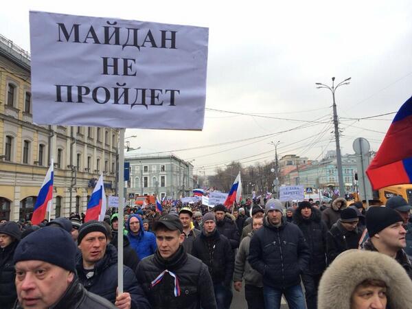 «Антимайдан» гуляет, уже 50 тысяч человек вышло, хотя, говорят, собиралось десять. Видимо неравнодушных людей оказалось больше, но вроде ничего не ломают, видимо, не затем пришли, и хорошо.