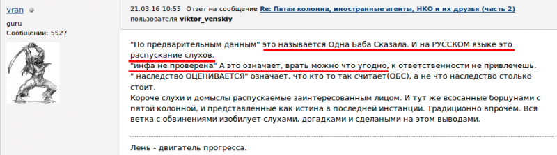 В ответ на: Вообще, защищать убитого , от клеветы упоротых выдумщиков...