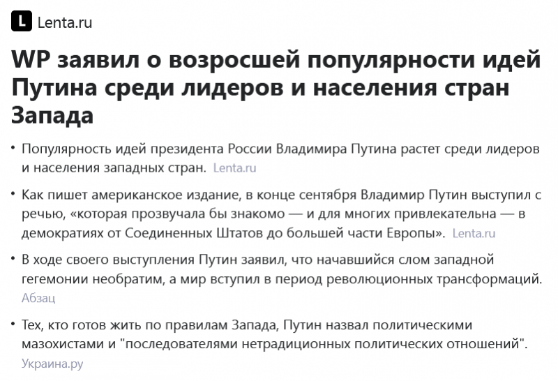 «Идеями Путина» издание вообще-то называет его авторитаризм.Как же не соврать разоблачая чужую ложь.