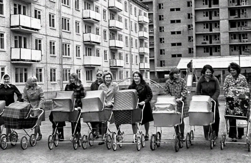 На БЗ вчера тему обсуждали.В колясках возили сдавать пустые бутылки в пункты приема стеклотары. Так было два раза в месяц, после аванса и получки. Слева видите коляска сильно просевшая - у этой женщины муж сильно пьющий. Не повезло ей или повезло, это как посмотреть.