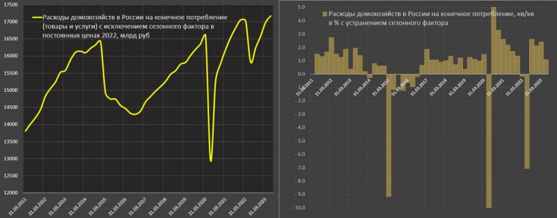 О какой аналитике идет речь: Рост на 4.5% за 8.5 лет не такой уж впечатляющий результат, но здесь нужно отметить, что каждый раз, когда потребительский спрос растет выше тренда – это провоцирует инфляционное давление в России (так было в конце 2021 и так происходит сейчас), даже учитывая, что интегрально спрос крайне слабый – околонулевой прирост за 10 лет.