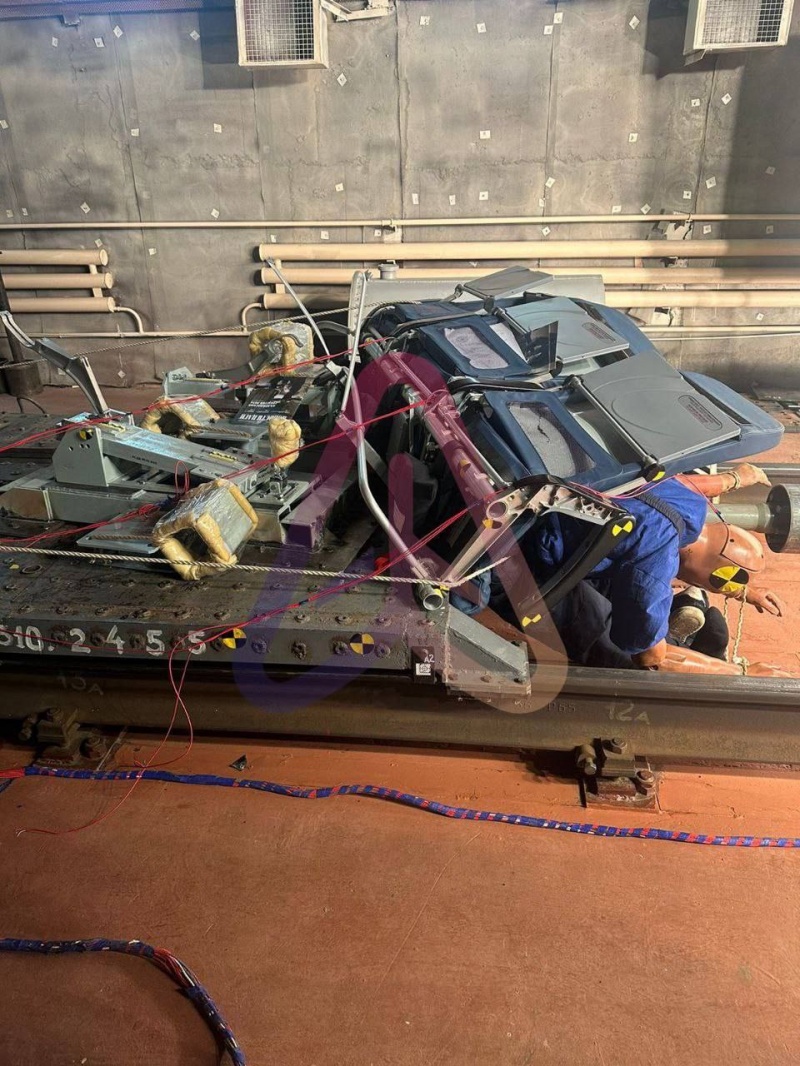 Как видно, это испытание провалено. Кресла, манекены и привязная система должны были остаться целыми и на месте.