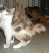 Любит воду, лезет вечно в ванну лапами, в любую емкость с водой - ведро, таз, но не плавает, конечно. Постоянно устраивает по дому гонки, да так, что всё на пути своём сносит. Сейчас ремонт - так он посидит в комнате полдня - потом вообще часа два не угомонишь!!!! Очень любопытный, смелый.