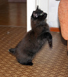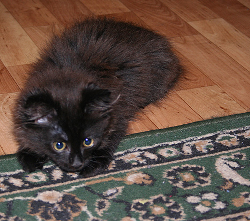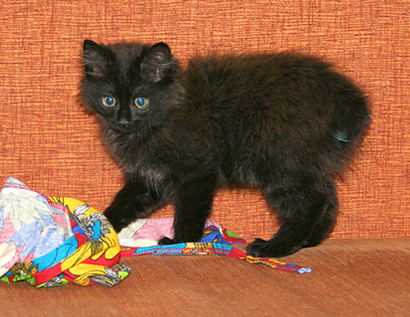 Лёпе три месяца. Он активен, игрив, хулиганист, но любит ласку, ручки. Найден у заколоченного подвала в морозы. Хвостик оказался сломан, потому его пришлось ампутировать. Теперь Лёпа напоминает курбоба))). Характер у Лёпы не робкий, если играет, то на всю катушку, а кульбиты и прыжки выделывает такие, что вся семья покатывается со смеху, глядя на эти игры. Охотно носит в зубах игрушку, гоняет ею по полу "футбол". Как любой ребёнок, нуждается в воспитании. Горшок знает, приучен, чистоплотен, предпочитает, чтобы горшок был чистым, поэтому если что-то не нравится - громкое продолжительное загребание обеспечено.