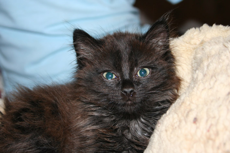 Вероятно, был носителем вирусного заболевания, т.к. заболела хозяйская кошка, несмотря на витафел. Сам котёнок не заболел, однако носителем может оставаться, хотя и прошёл курс лечения, аналогичный заболевшей. Поэтому желательно, чтобы ребёнок был взят либо в семью без кошек, либо в семью с привитыми кошками.