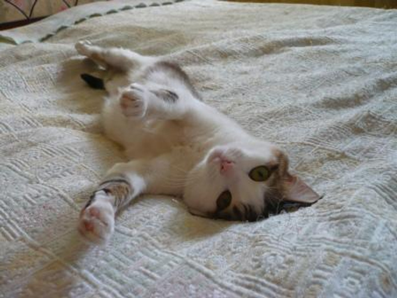 Кошечке примерно 8 месяцев (точный возраст не знаю, т.к. она была подобрана на улице). Приучена к лотку и когтеточке, полностью социализирована. Стерилизована.