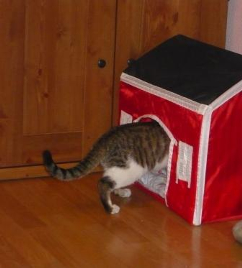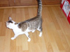 кошь уже освоила лоточек, поняла, где ее кормят, и даже ухитрилась на маленькие разбойства - стащила со стола печеньку