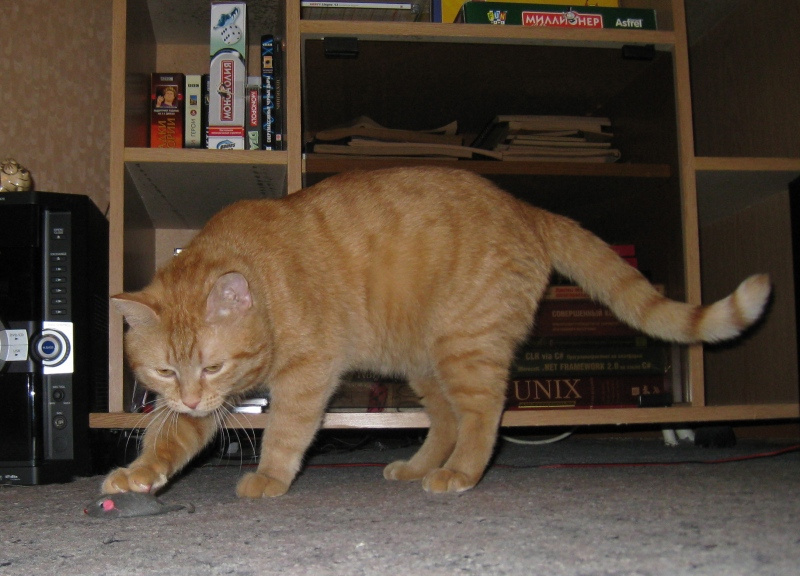 Лоток кот обнаружил сразу - с этим никаких проблем, когтеточку то же сразу признал. По питанию - кормлю пропланом, сначала обычным, сейчас - для кастрированных котов. У кота проблемы с избавлением от проглоченной шерсти, так что надо временами давать специальную пасту (джимпет, бефаровскую не любит).