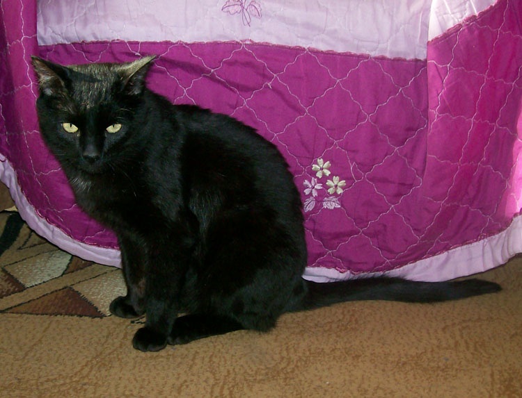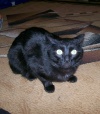 К сожалению, на данный момент имеется всего одна не очень качественная фотография, я ее прицепляю, после выходных обещают еще сделать, будут получше :хехе:Но кот чисто-черный, без единого белого пятнышка. Глаза желтущие, мини-пантера. Кто уважает такую вороную масть, тому самое оно :хехе: