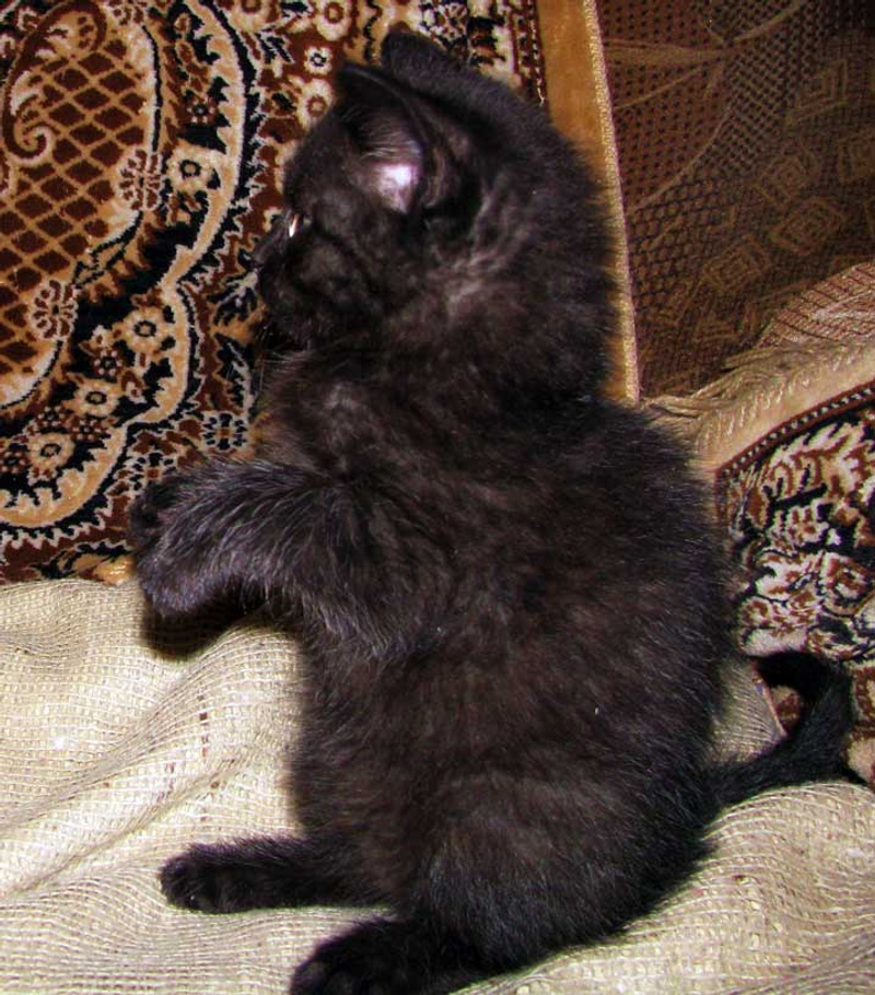 Имеется в наличии маленькое кошачье создание. Мальчик 1-1,5 месяца. Блох нет. Проглистогонен. Очень шустрый, игривый непоседа.