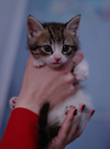 Крошечка, отличается умом и сообразительностью. При играх никогда не выпускает когти, никогда не кусает больно.Малышка не лезет в труднодоступные места из которых потом не сможет вылезти. Её крошечные ножки не всегда достают до ушка, чтобы его почесать. Зато ножки всегда успевать добежать до лоточка, чтобы сделать все свои дела там.