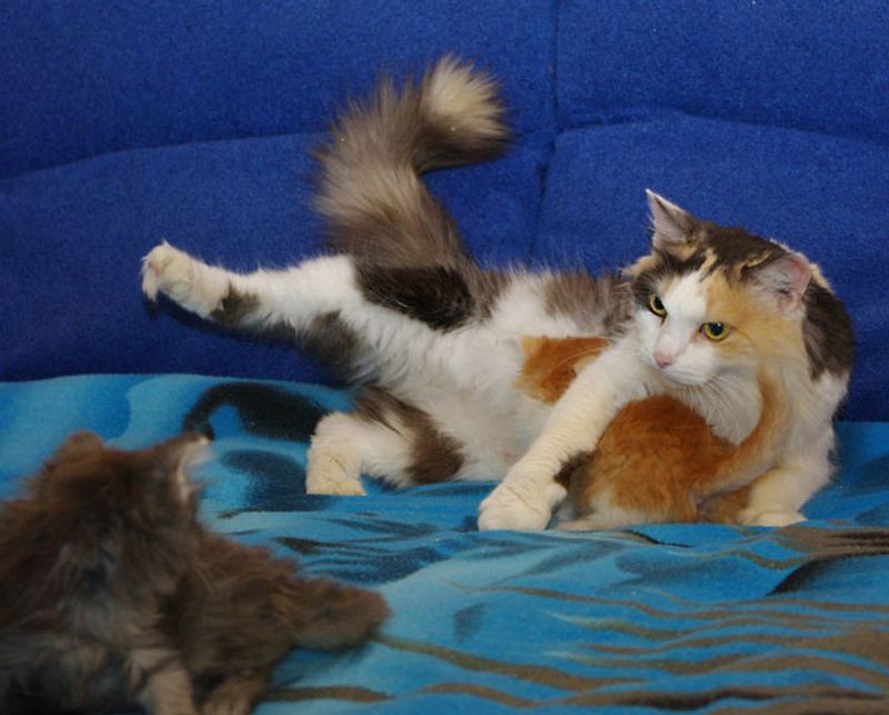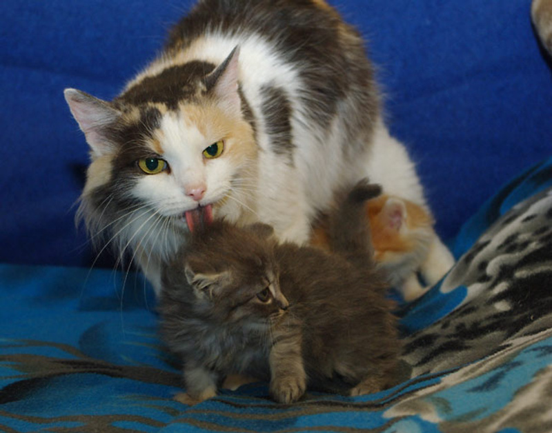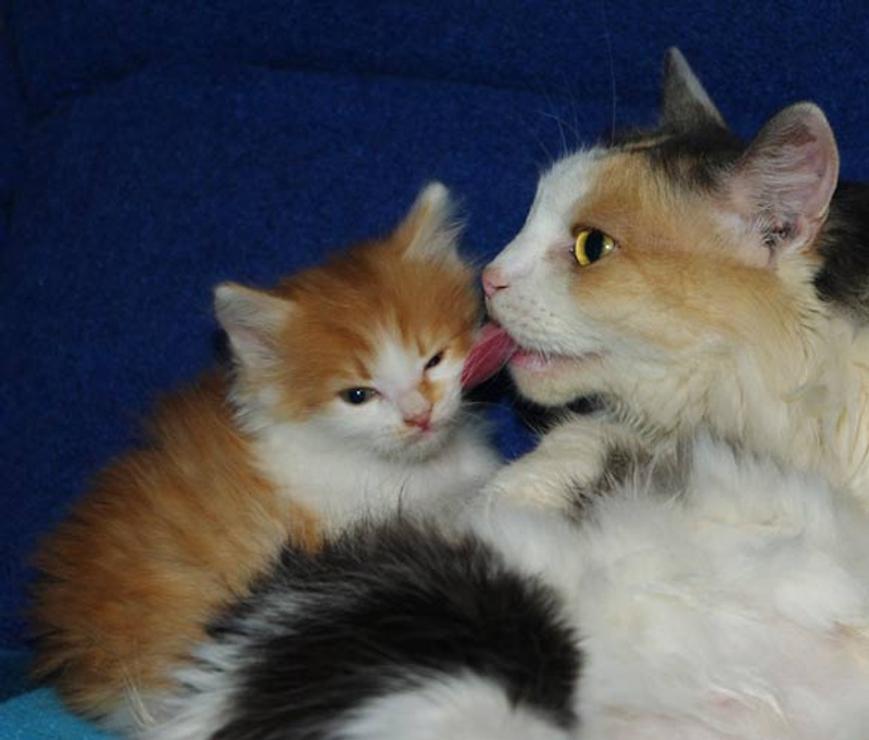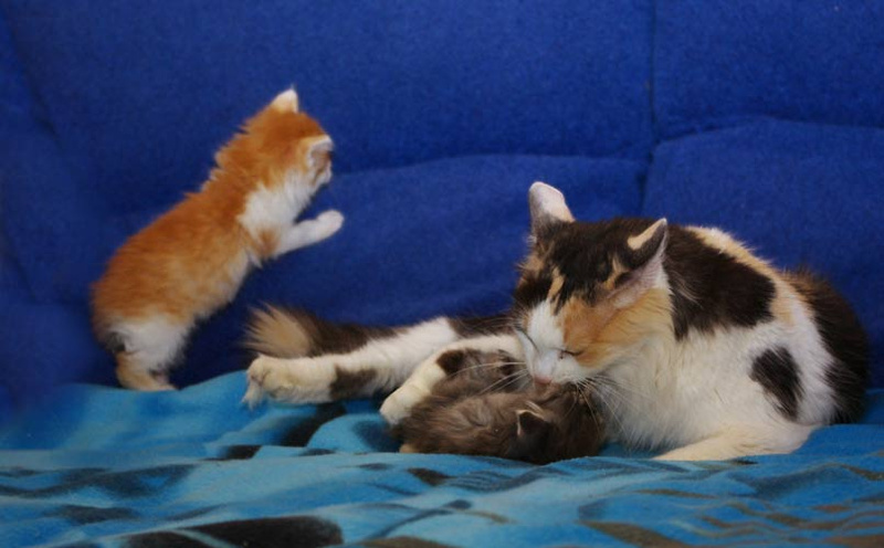 Самое удивительное случилось на утро следующего дня, она встретила меня в окружении 2 котяток, как бы говоря, что нельзя было забирать ее одну из подвала. Это умнющая кошь, доверяя и понимая, что ей хотят добра не стала убегать и тревожиться когда я тихохонько приблизилась к ним с мисочкой еды. Спустив в подвал переноску, слегка смазанную валерьянкой, мне пришлось убежать по делам. Возвратившись часа через три я лицезрела все замечательное семейство возлежащее на белоснежной пеленке внутри переноски, как бы всем своим видом говорящее, что вот таким составом они готовы покинуть пыльный подвал.