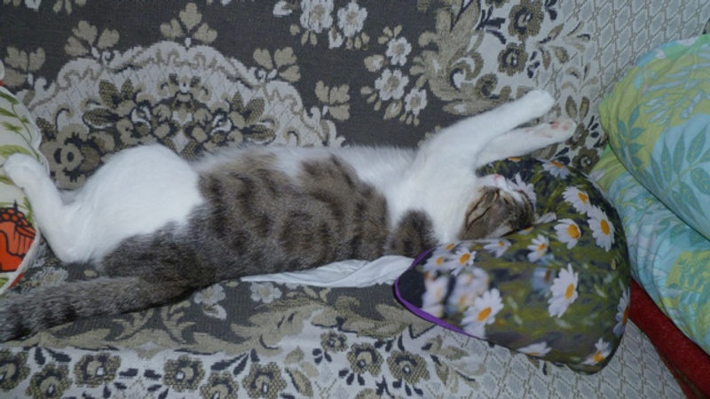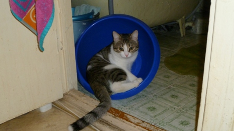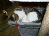 Кошачий туалет уважает, за то что есть такое место, где можно отвести душу, правда иногда там и засыпает.