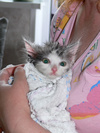 , но конечно с испытательным сроком. Это из хорошего.Спасённая кошка выцарапывает человека из ада...