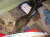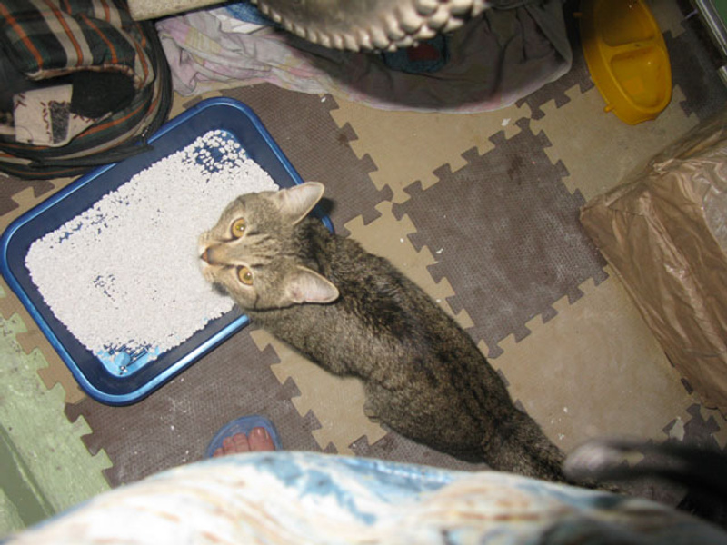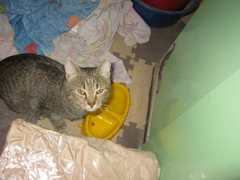 . Как я его протаскивала, мимо своих, какой концерт они дома устроили, почуяв чужака. Но все это так сказать просто предистория Вобщем сейчас на лоджии отсыпается. Молодой серый полосатый, не кастрированный,не очень большой, (думала подросток)врачи сказали, возраст примерно 1,5 года, вес 2900. Кот явно домашний,с удовольствием лопает сушку, очень ласковый. Как выяснилось сегодня лоток знает,что меня безумно радует. Обработан от блох, проглистогонен, ушного клеща нет. Котик абсолютно здоров. Осталось только откормить,и будем искать ему старых или новых хозяев.