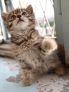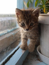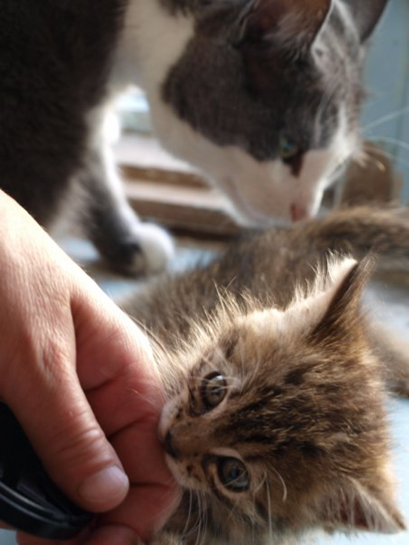 Второго вроде пристроили, но не срослось... А мама их повредила лапку где-то, но не сильно, киску женщина одна забрала лечить. Ну вот, второго котенка моя мама взяла пока временно себе, на улке-то не дело малыша оставлять.