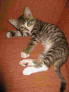 Котик очень ласковый, шустрый, спит и играет, кушает хорошо.
