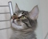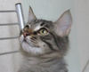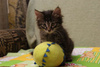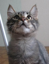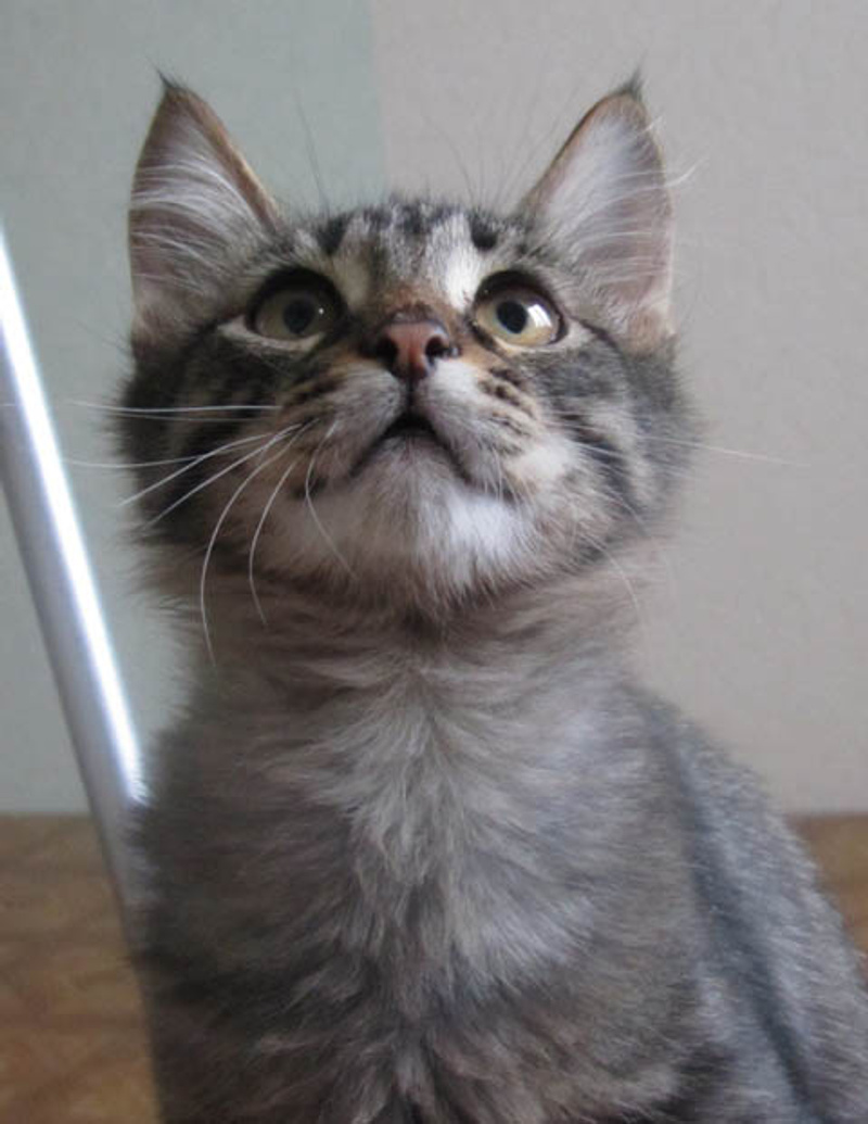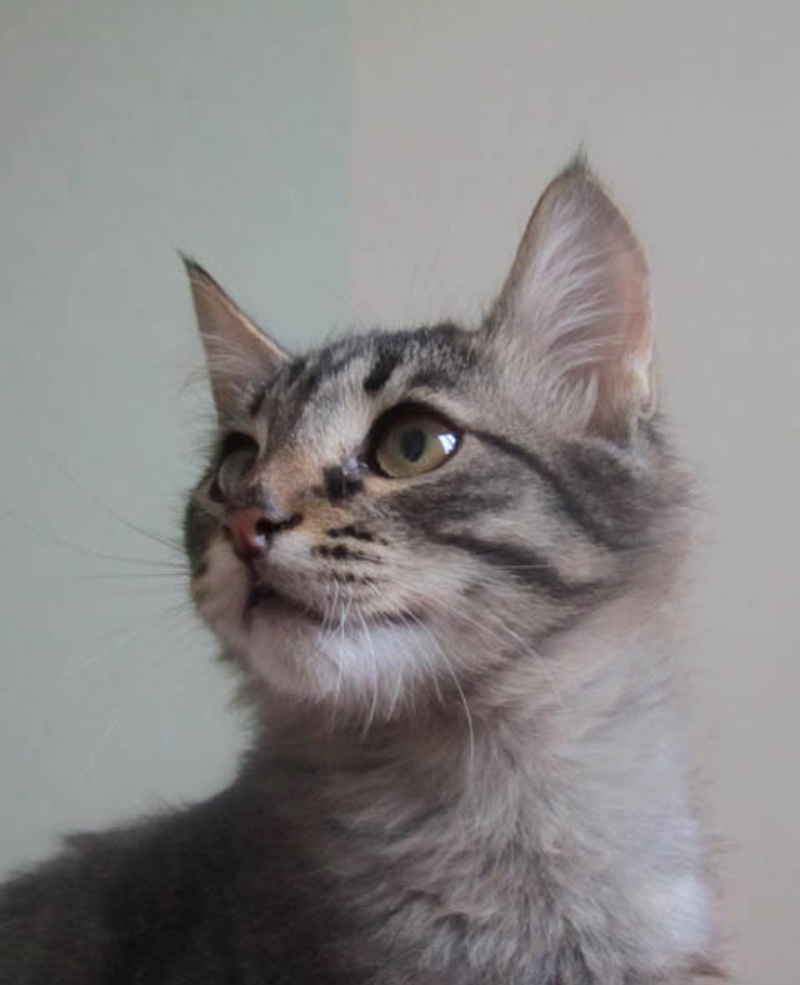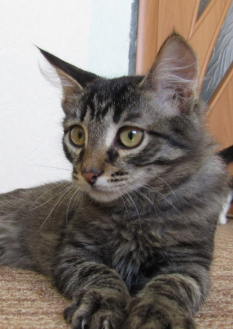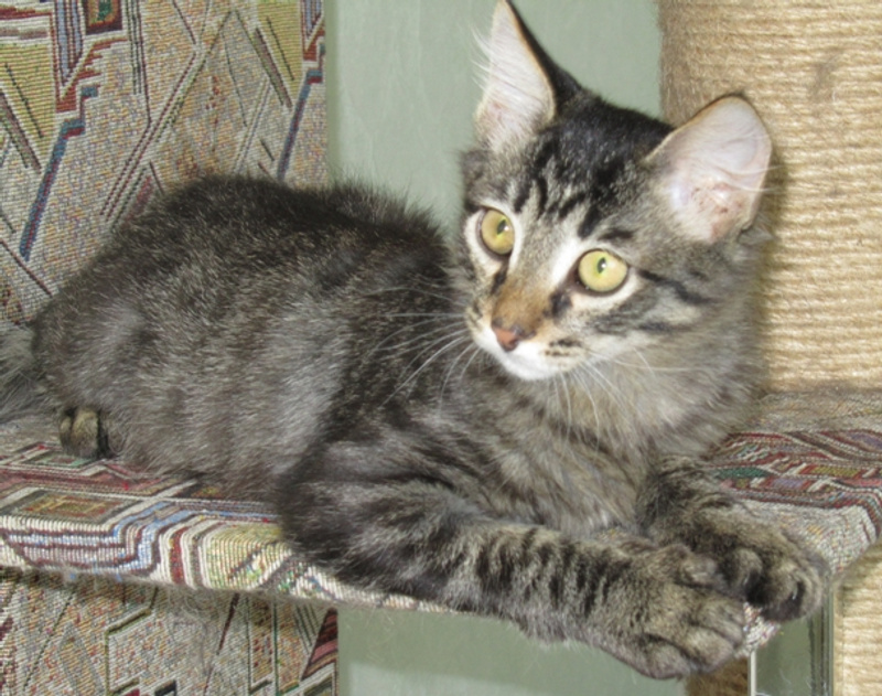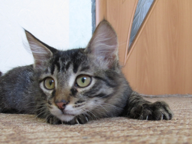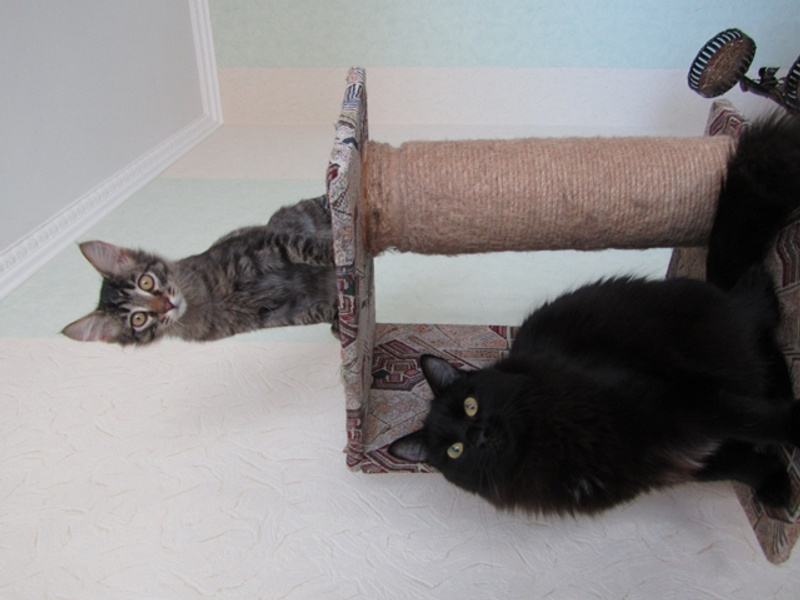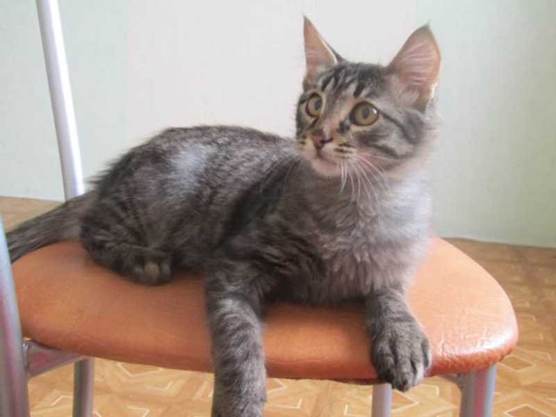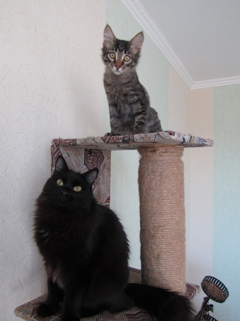 Сейчас котёнок здоров весел и игрив.Он ласковый, прекрасно уживается с другими кошками. Ходит чётко в лоток с наполнителем. Обожает кошкодром, лазает по всем уровням и спит в домике. Будущим хозяевам обязательно нужно обзавестись кошкодромом.