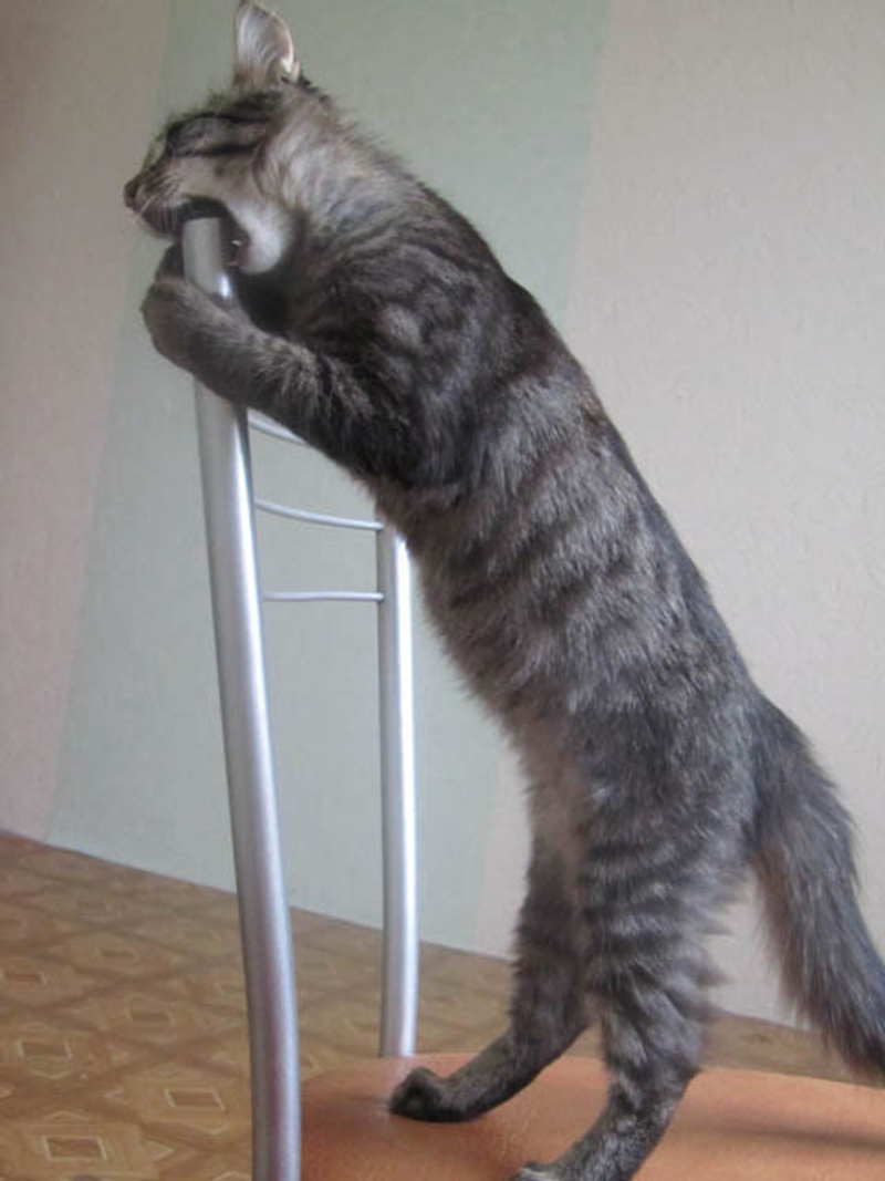 Обычно кошки мебель когтями портят, а Ваш грызёт как собака. Хотя у моей кошки тоже были случаи погрызки цветочных кашпо